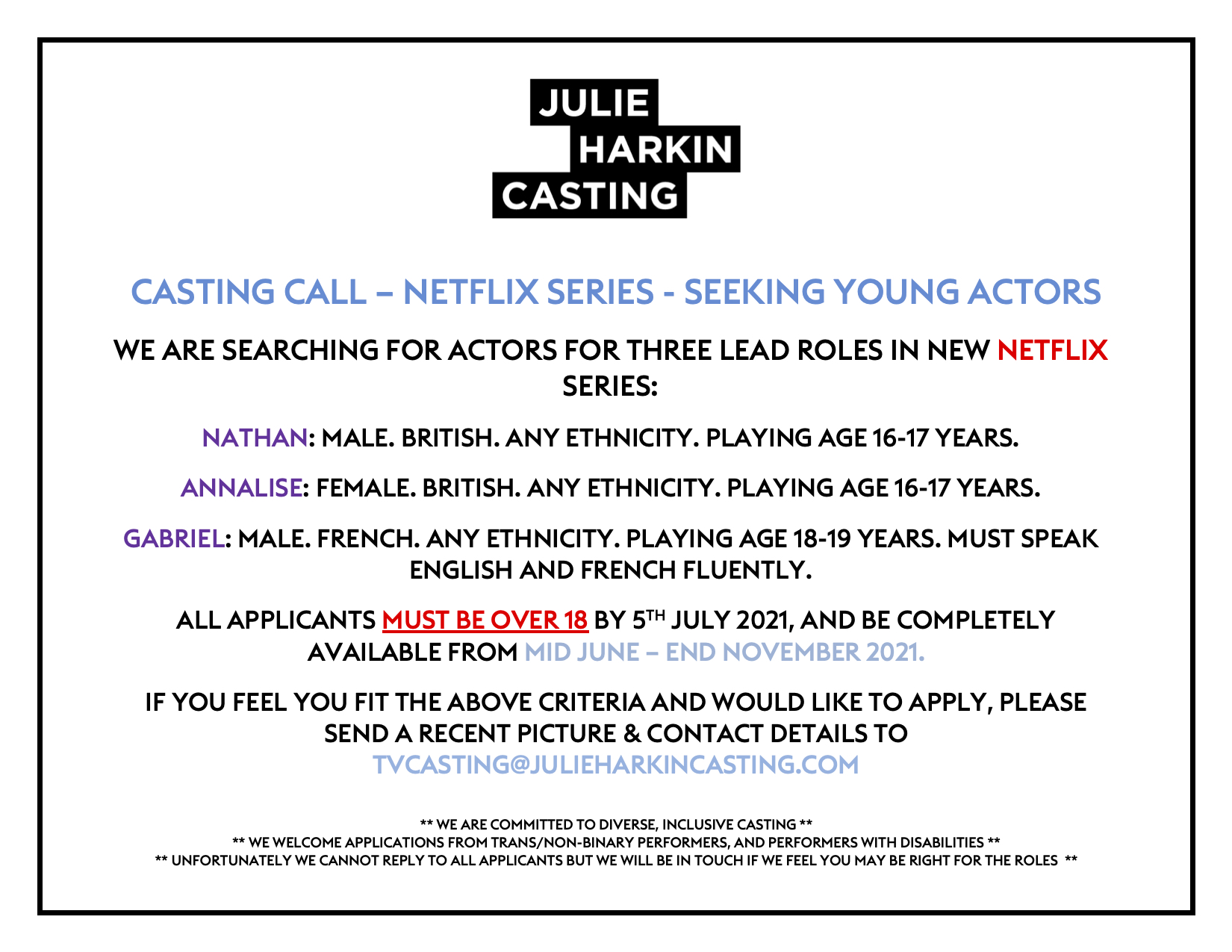 Julieharkincasting On Twitter Casting Call For Teenage Lead Roles In New Netflix Series Please Share Rt Text Version Https T Co 0uht34vhko Https T Co Sppt9gfoft Twitter